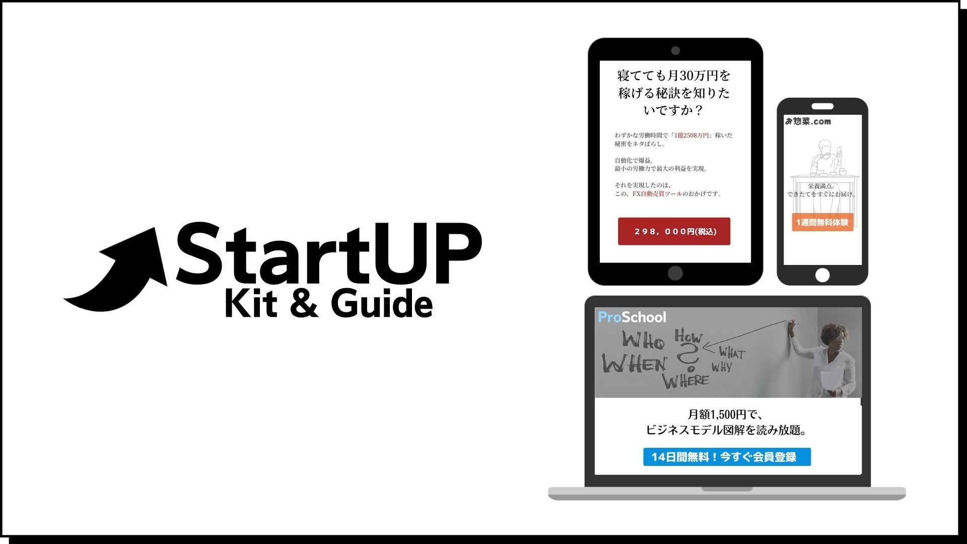| 製品内容 | 購入すると当サイト、StartUP Kit & Guideの永久会員となる権利が得られます。 |